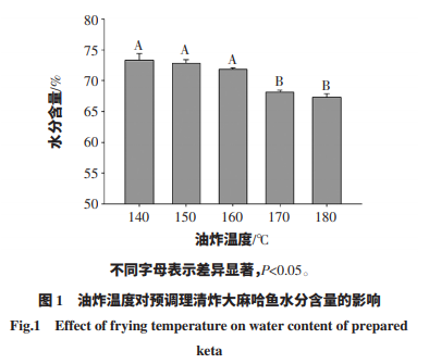 油炸溫度對預(yù)調(diào)理清炸大麻哈魚水分含量的影 響見圖 1。