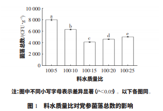 1.2.1.1 料水質(zhì)量比對黨參菌落總數(shù)的影響